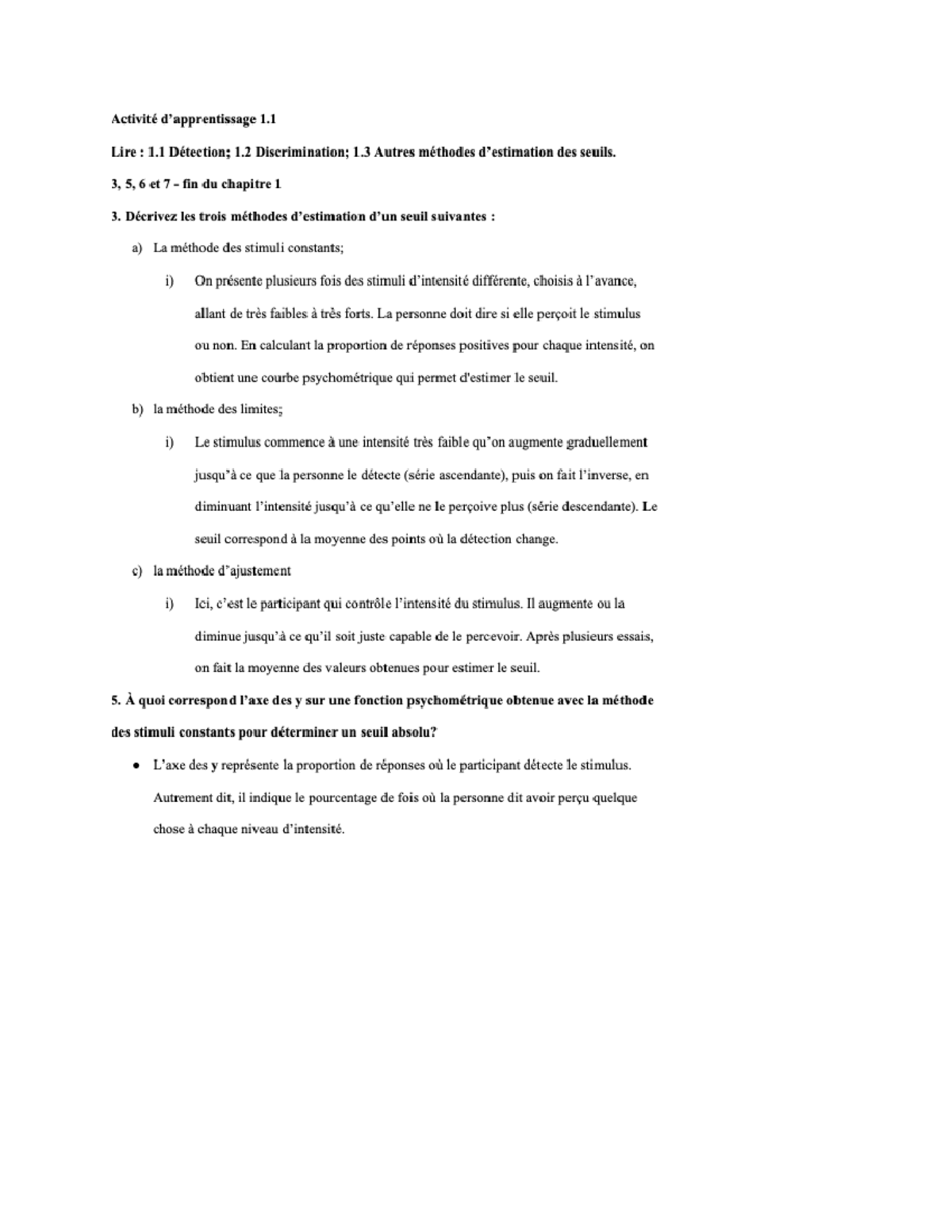 2905 - Revue de l'Examen sur la Psychophysique et la Perception - Studocu