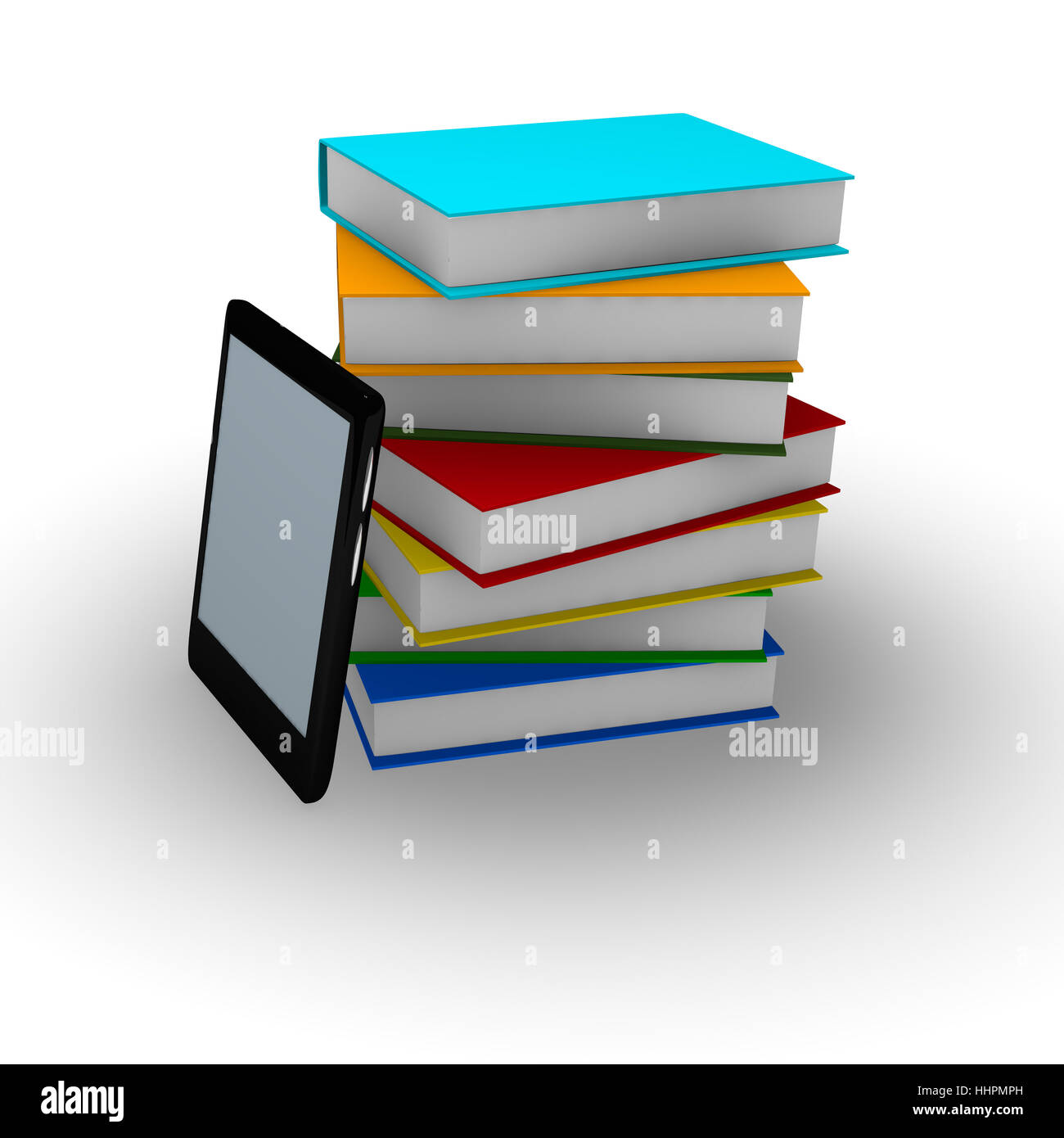 Colorful Study Environment Tablet Stack Books Educational Technology ...