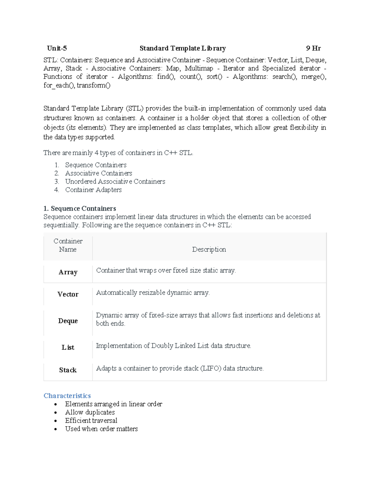 STL Containers and Iterators: A Comprehensive Guide (CS101) - Studocu