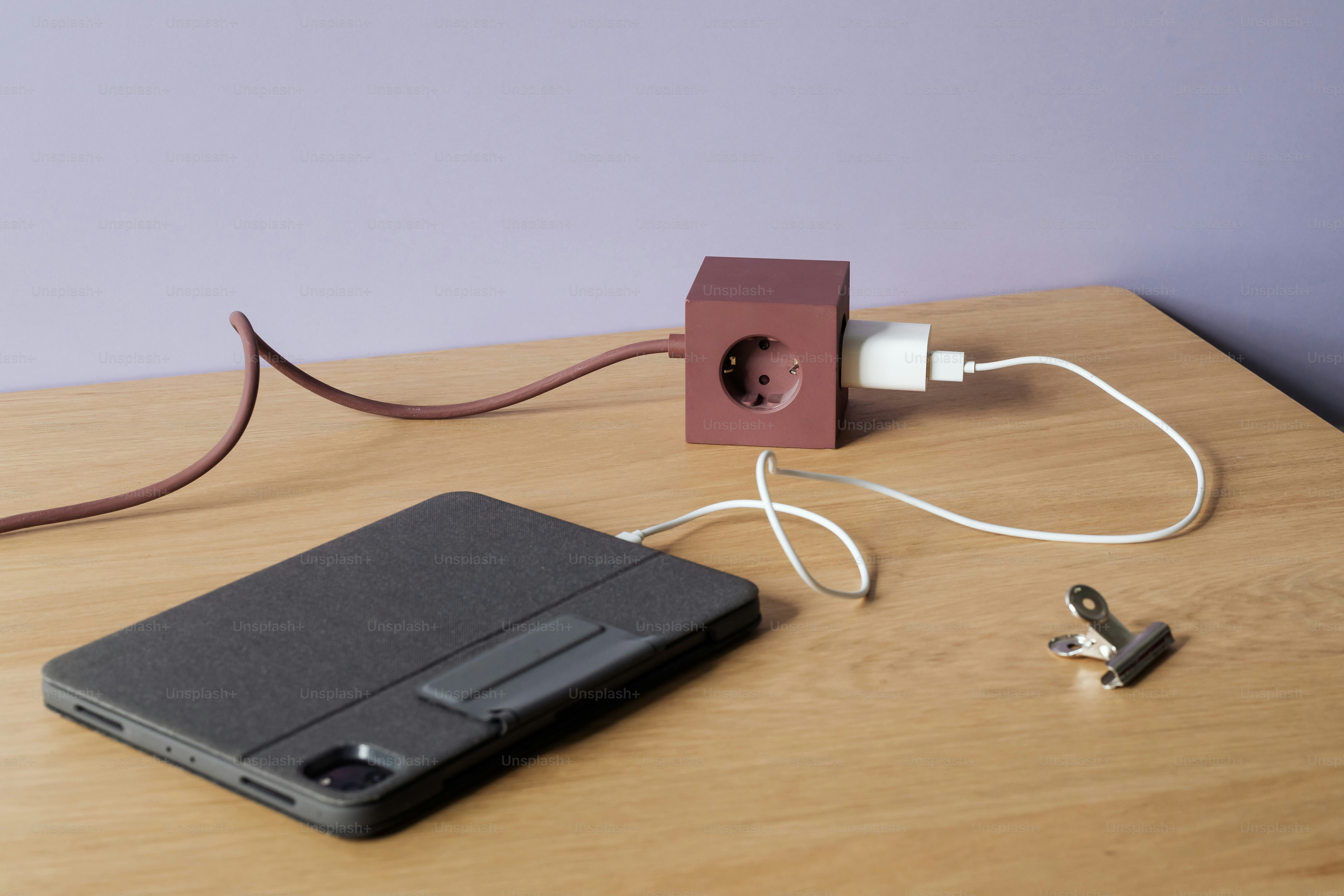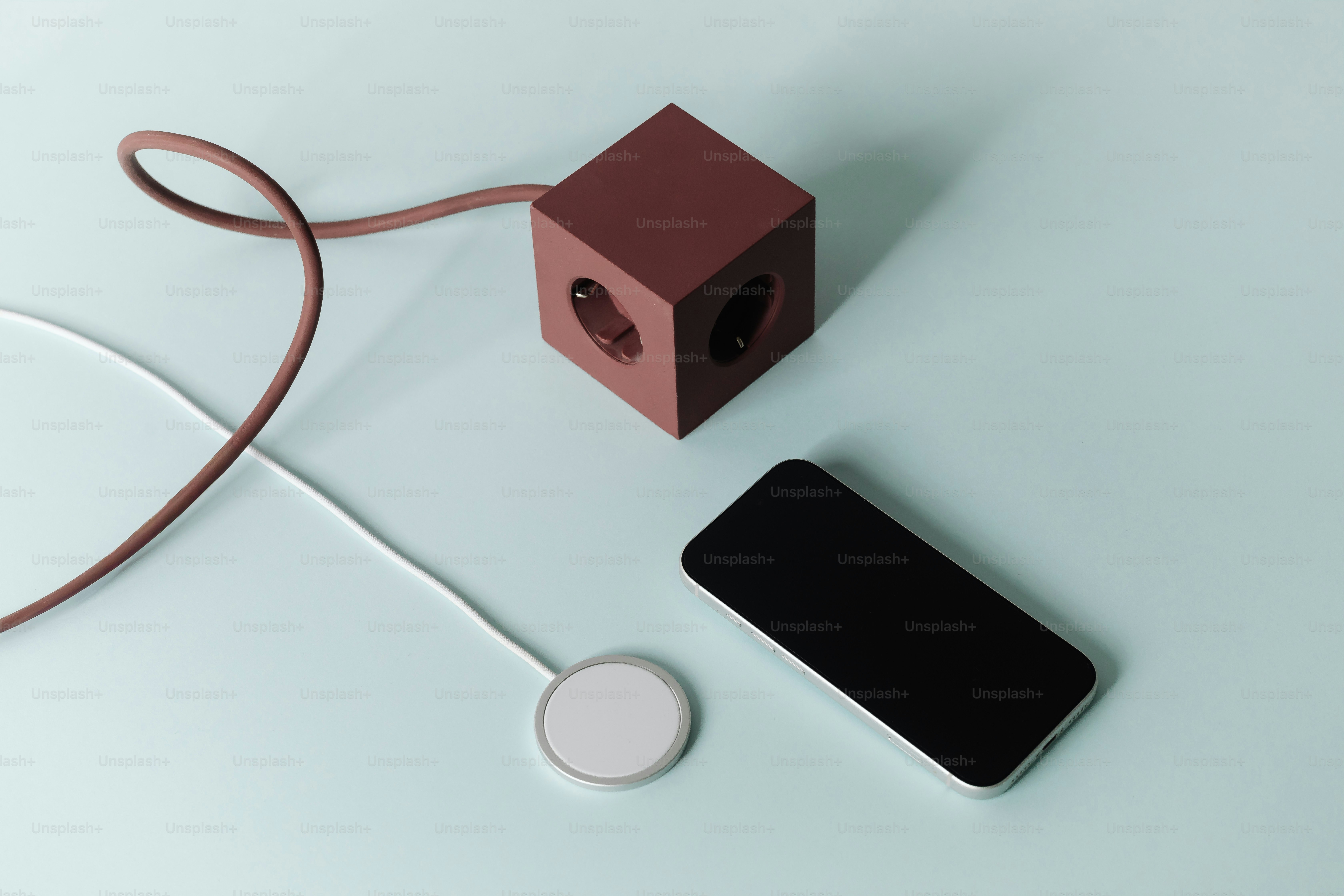 A cube power strip with a phone and charger photo – Technology Image on ...