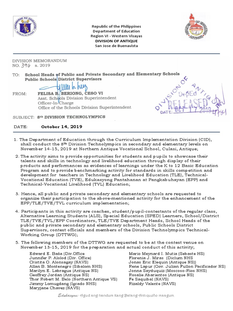 8th Div Technolympics Memo - Signed PDF | PDF | Grafting | Installation ...
