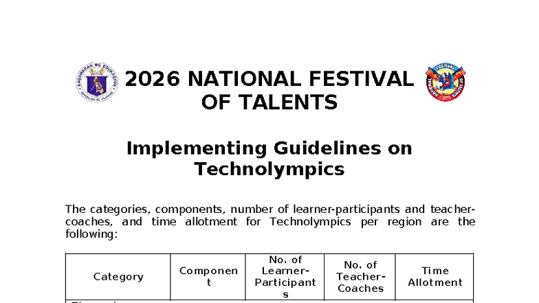 2026 National Festival of Talents: Technolympics Guidelines - Studocu