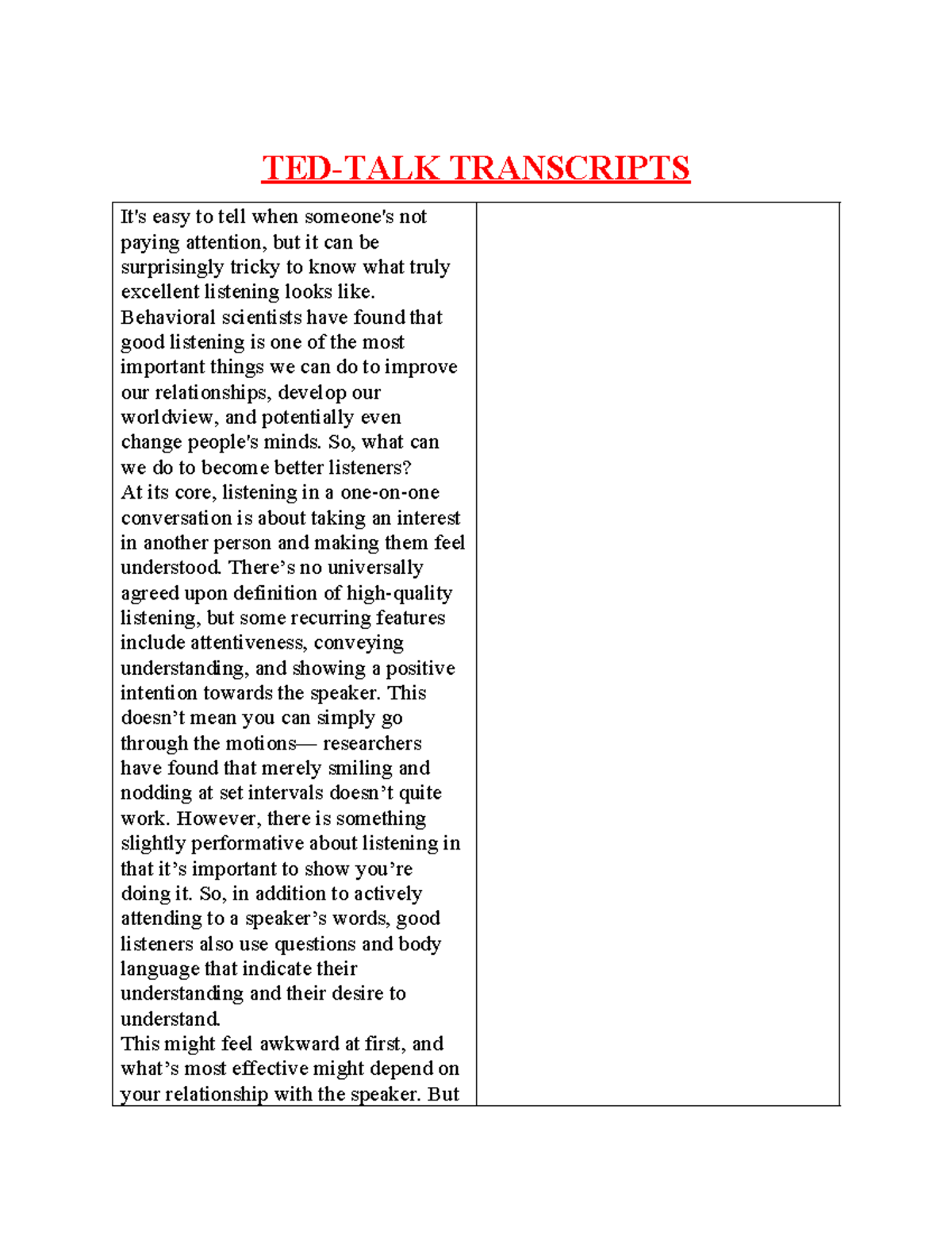 Ted Talk Transcript Report.docx - Ted Talk Transcript Report The Ted ...