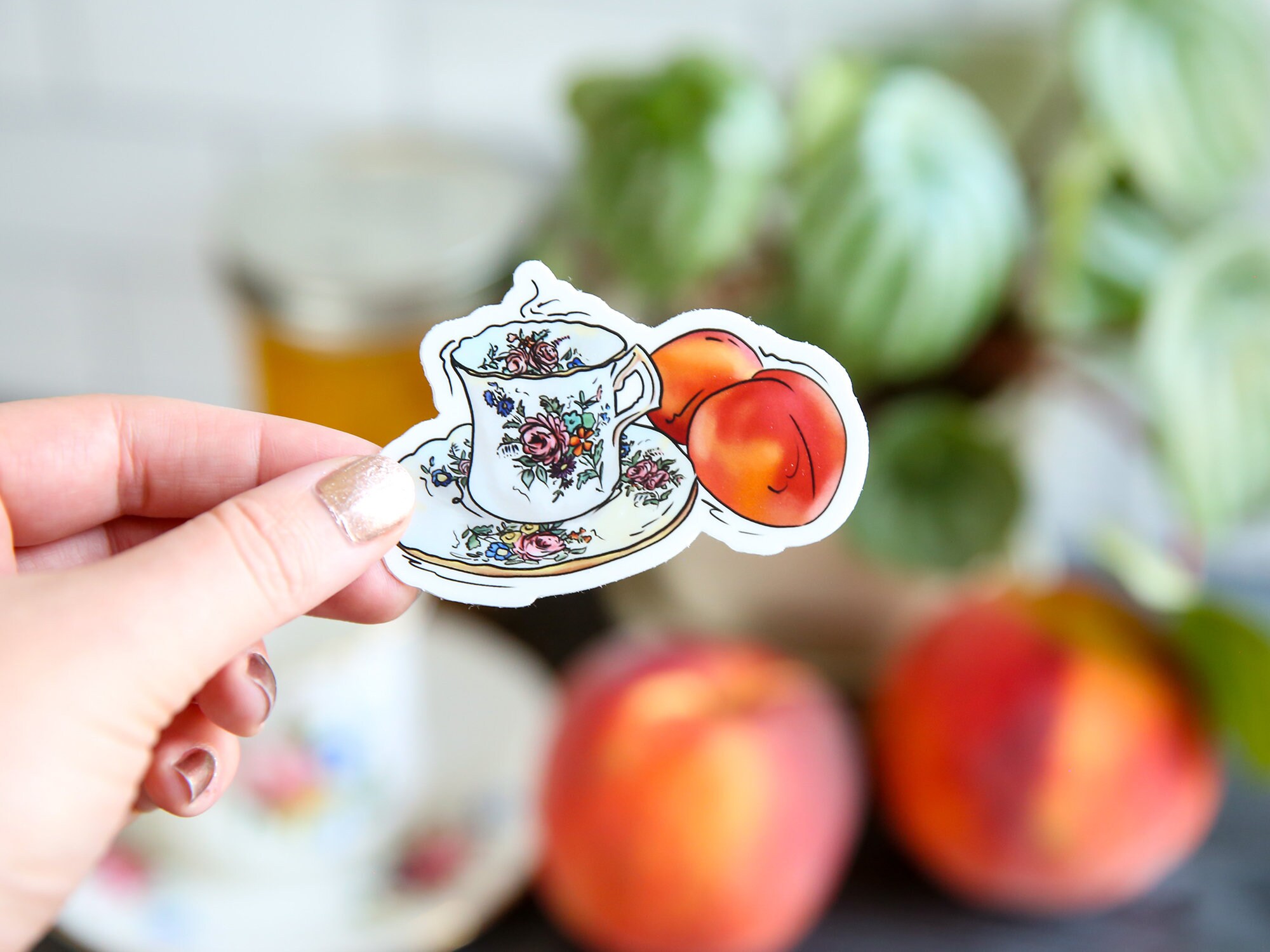 Peach Tea Sticker Peach Sticker Tea Cup Sticker Fruit | Etsy