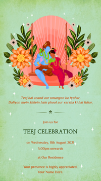 Vibrant Teej Festival Celebration Invitation with Floral Swing Theme ...