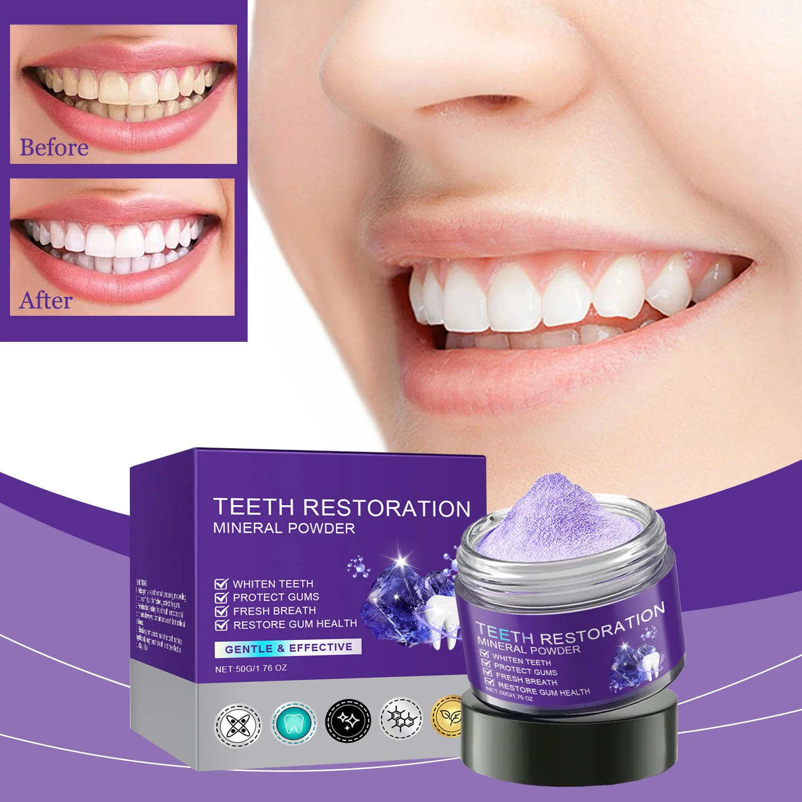 Amazon.com : 2PCS Purple Teeth Restoration Mineral Powder, Mineral ...