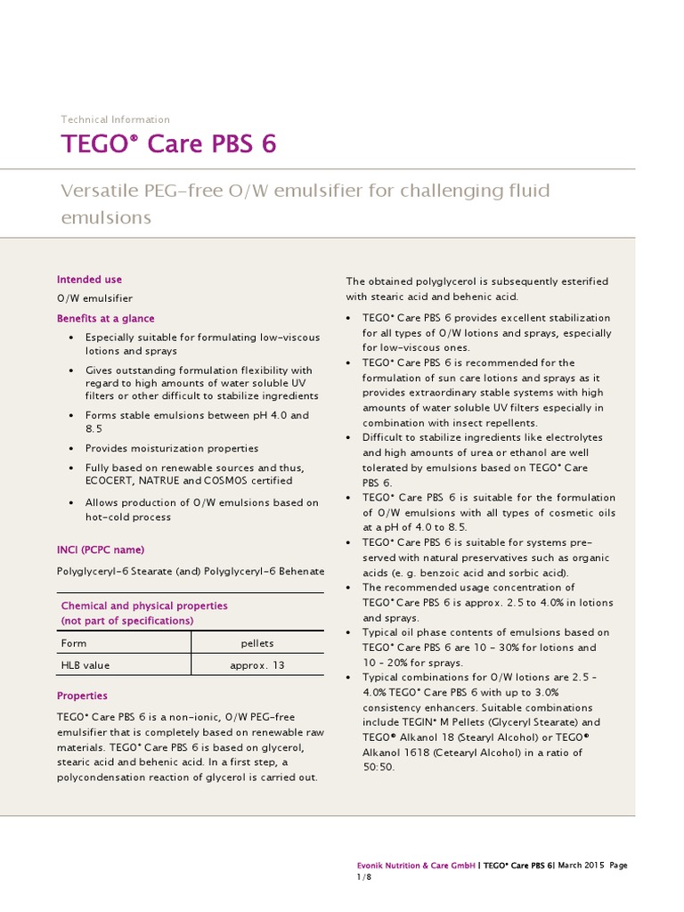 Tego Care PBS 6. TDS. 03.01.15 | PDF | Emulsion | Chemistry