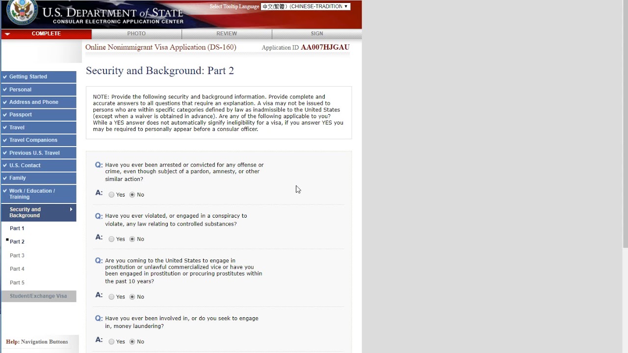 How to fill out the form DS 160 in Chinese for Taiwan (part 2) - YouTube
