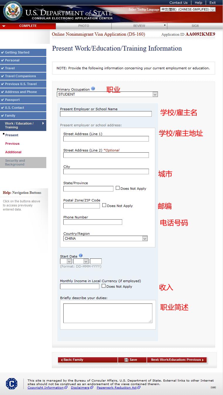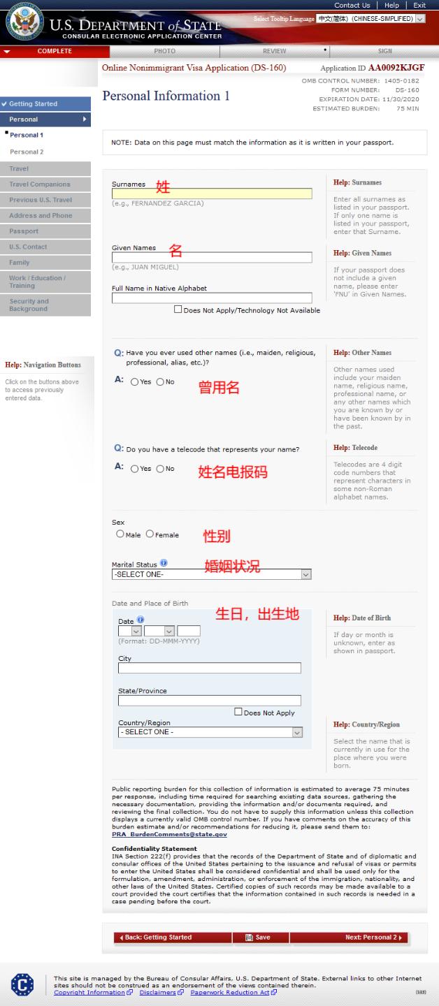 DS-160表的填写流程 申请方