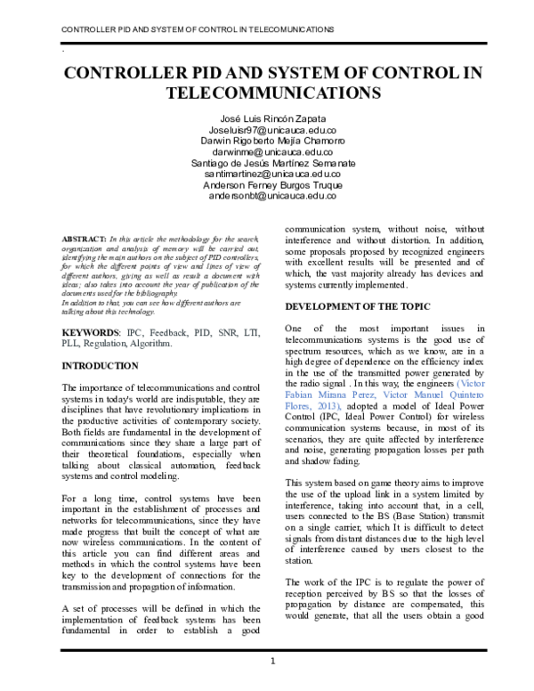 (DOC) CONTROLLER PID AND SYSTEM OF CONTROL IN TELECOMMUNICATIONS