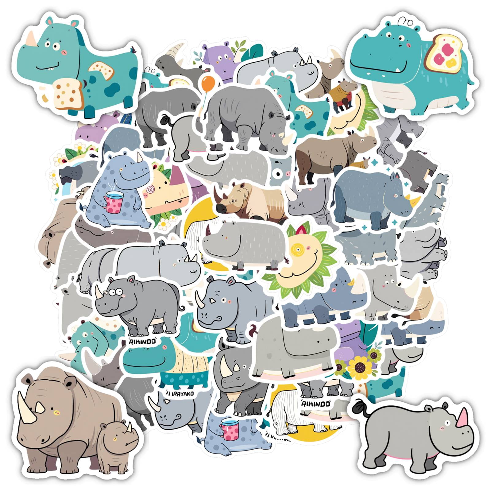 35pcs Cartoon Stickers Rhinoceros Animal Kids Stickers Graffiti PVC ...