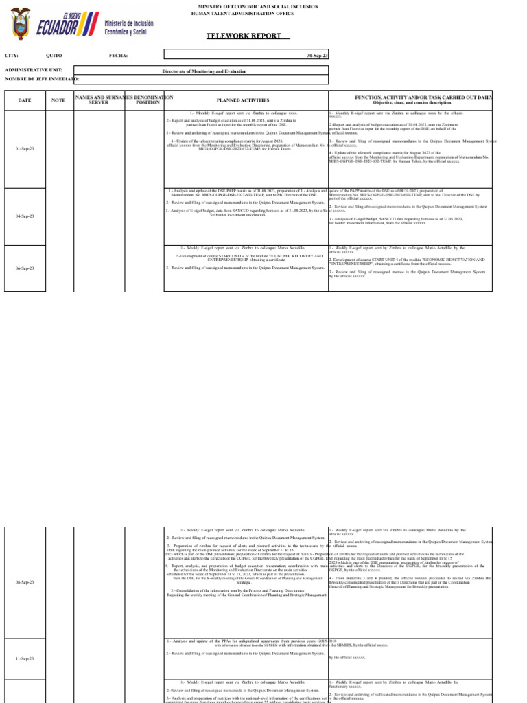 》Printable Weekly Telework Log Template