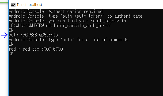 android emulator에 telnet접속시 token 위치와 사용 : 네이버 블로그