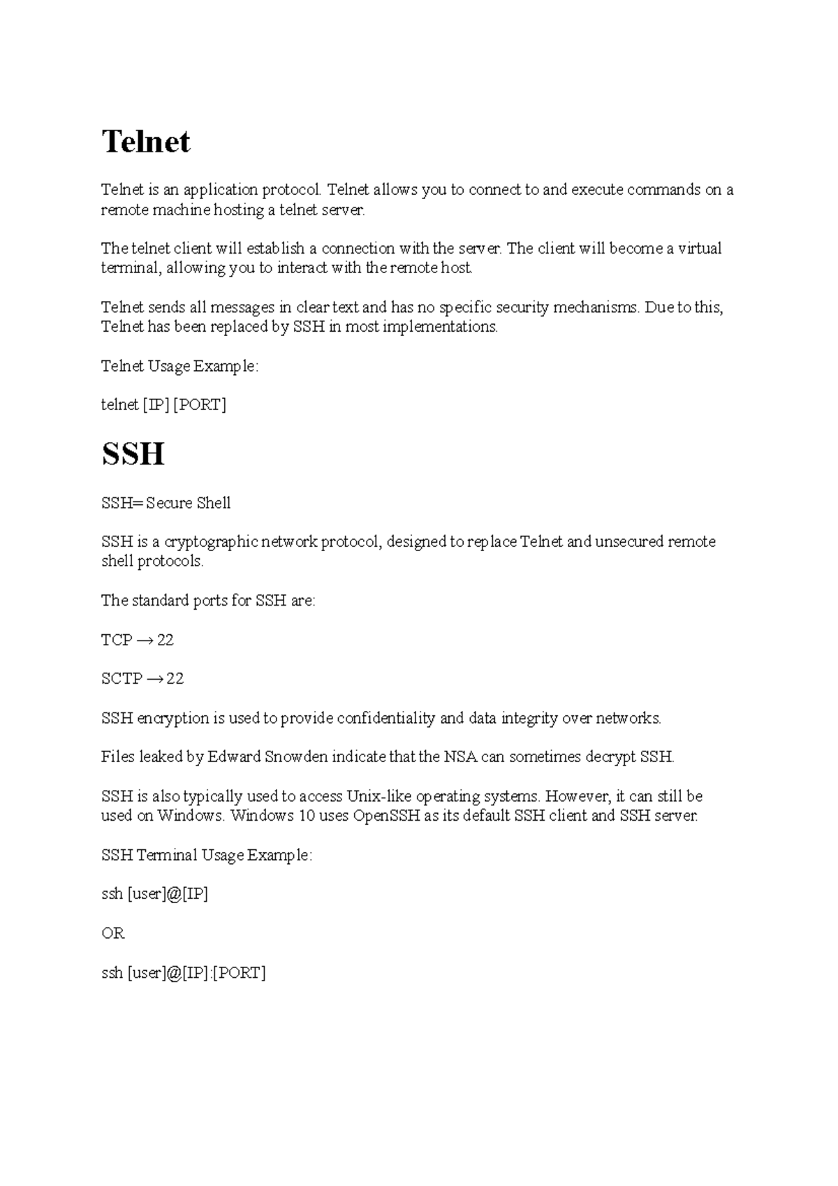 Telnet and SSH- Lecture Notes - Telnet Telnet is an application ...