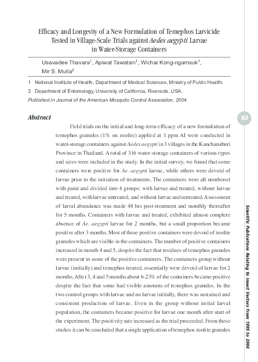(PDF) Efficacy and longevity of a new formulation of temephos larvicide ...