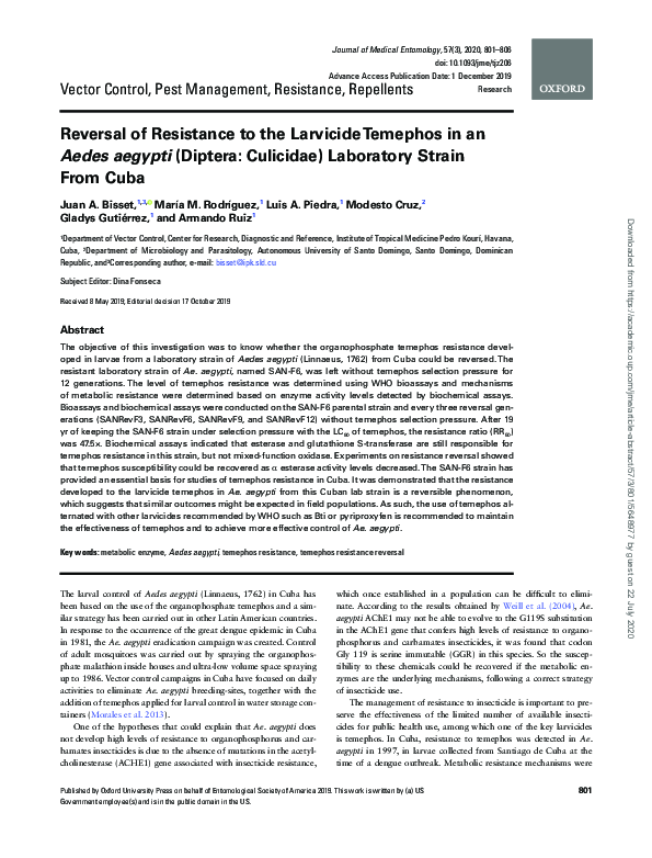 (PDF) Reversal of Resistance to the Larvicide Temephos in an Aedes ...