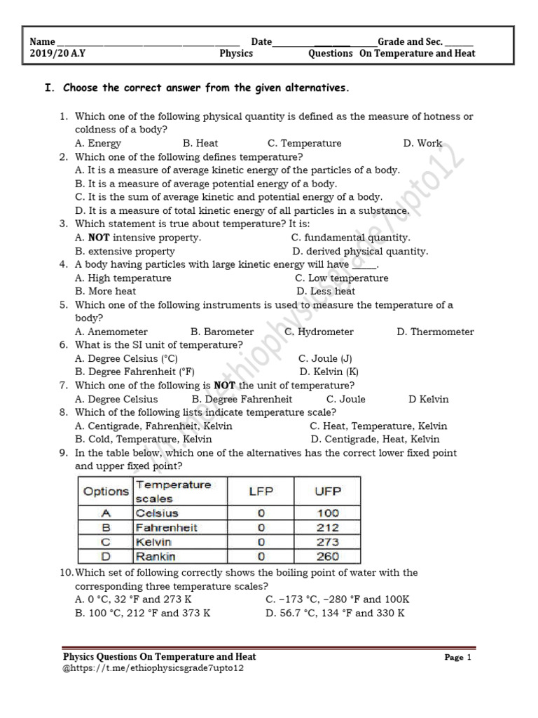 Heat & Temperature Quiz | Heat & Temperature Questions Answers PDF ...
