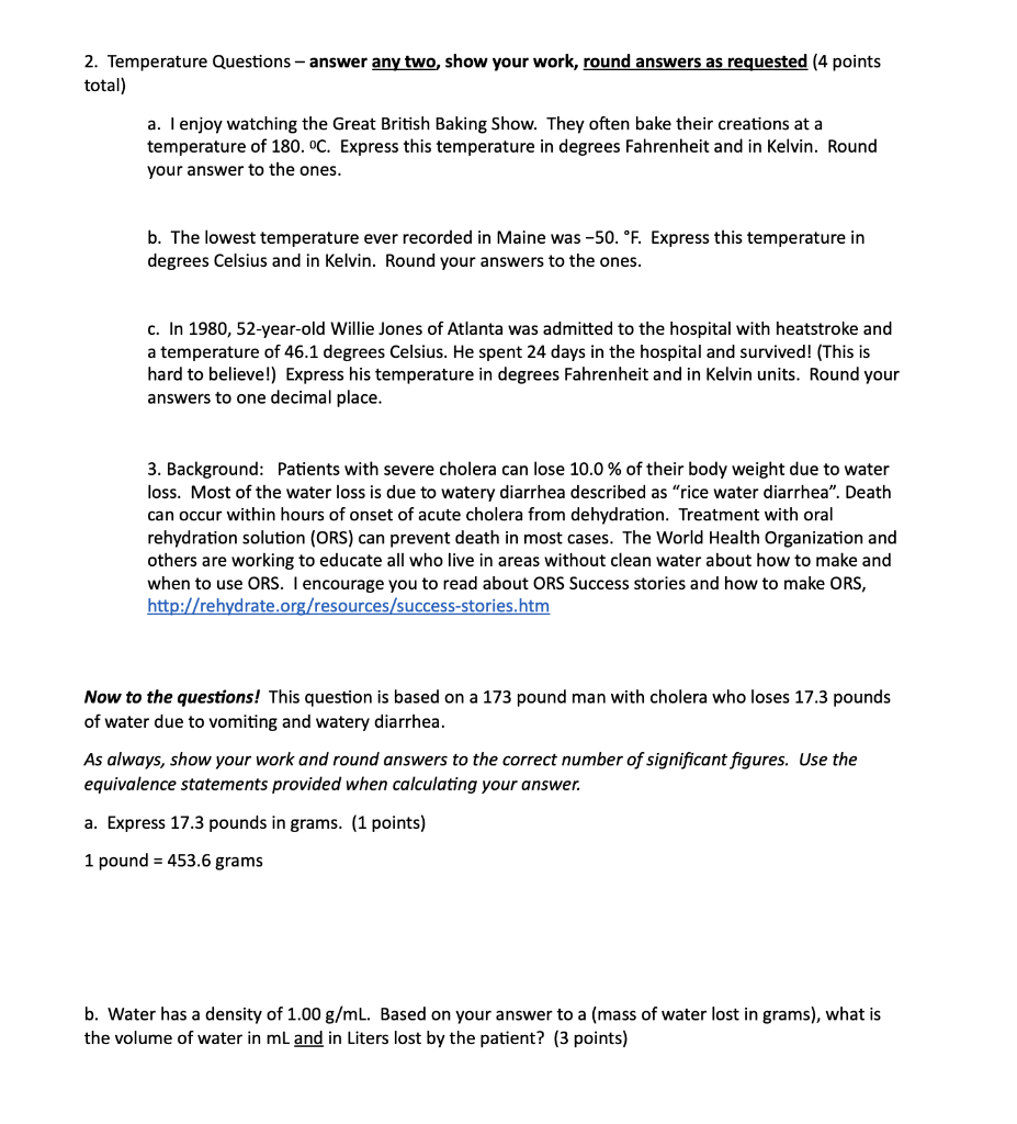 Solved 2. Temperature Questions - answer any two, show your | Chegg.com