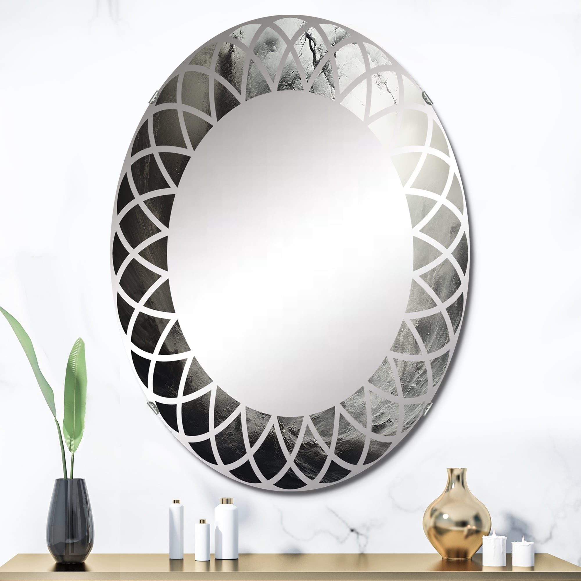 Designart "Tempestuous Dance Grey Storm I" Landscapes Round Wall Mirror ...