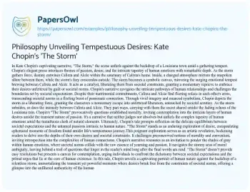 Philosophy Unveiling Tempestuous Desires: Kate Chopin's 'The Storm ...