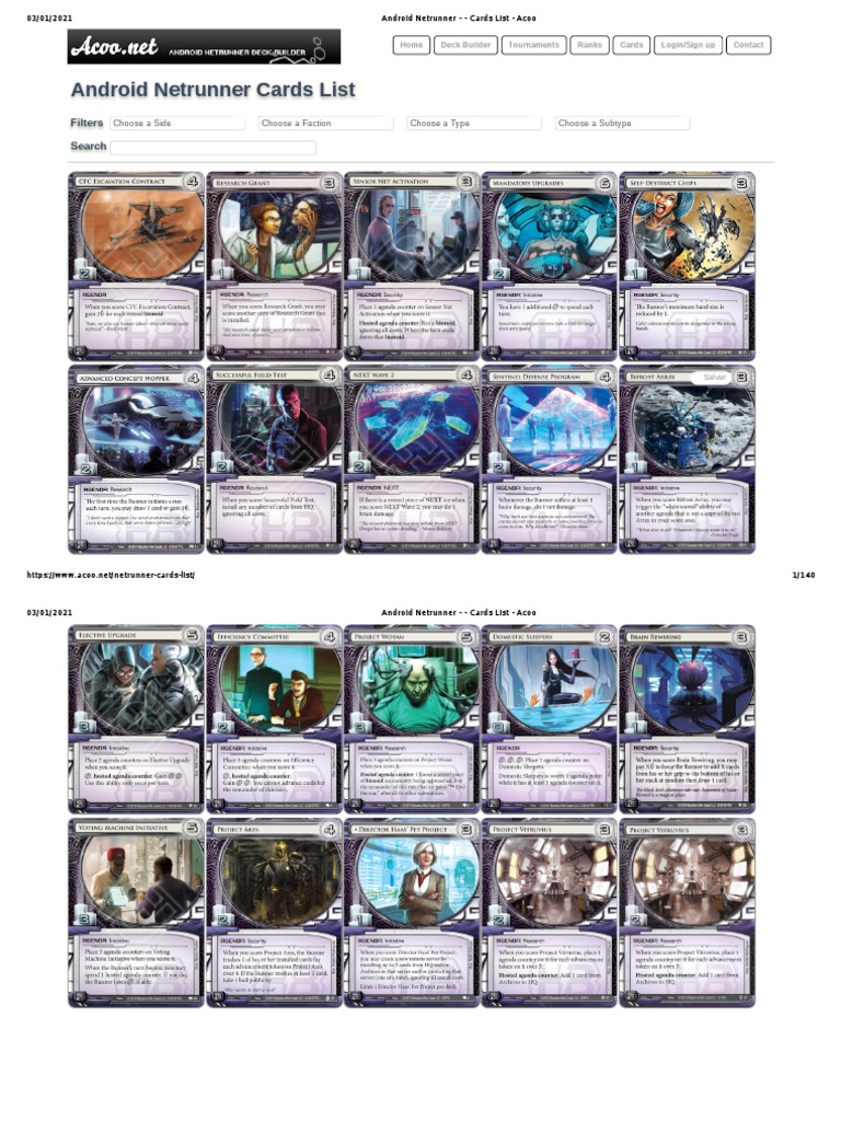 Android Netrunner - Cards List - Acoo | PDF | Entertainment | Leisure