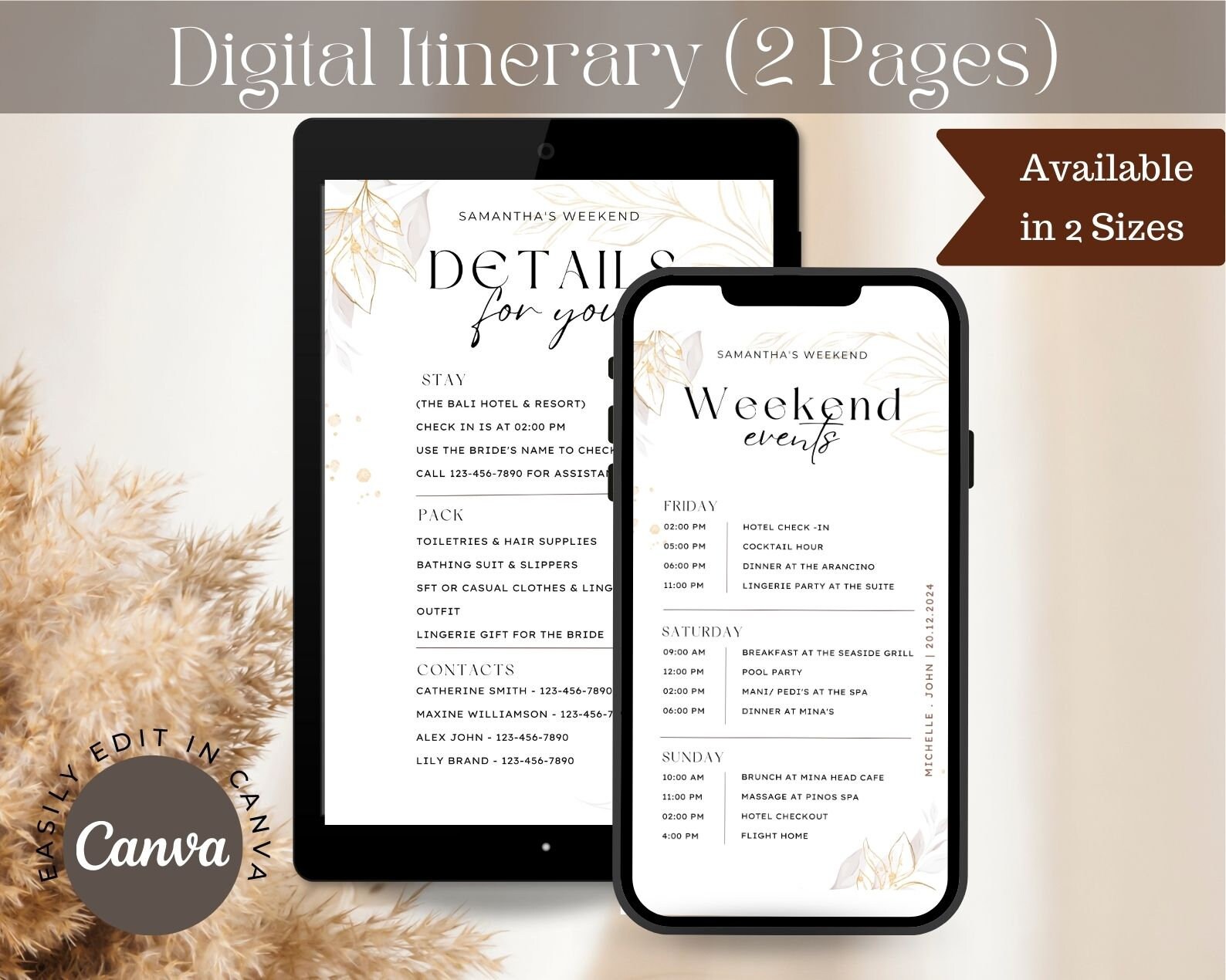 Digital Modern Weekend Events Itinerary Template for Phone & Tablet ...