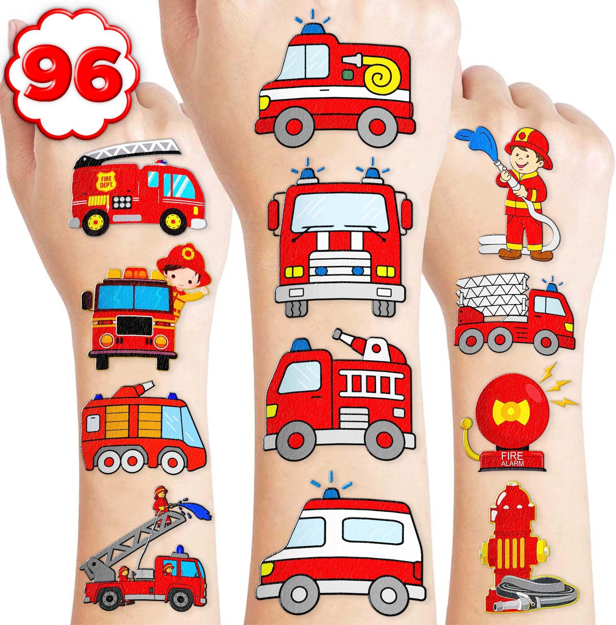 Amazon.com: 96 PCS Firefighter Firetruck Pre-Cut Temporary Tattoos for ...