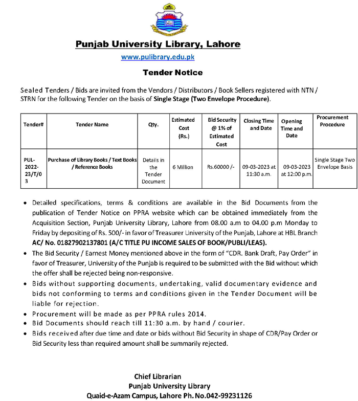 Tender Notice for Purchase of Library Books / Text Books / Reference ...