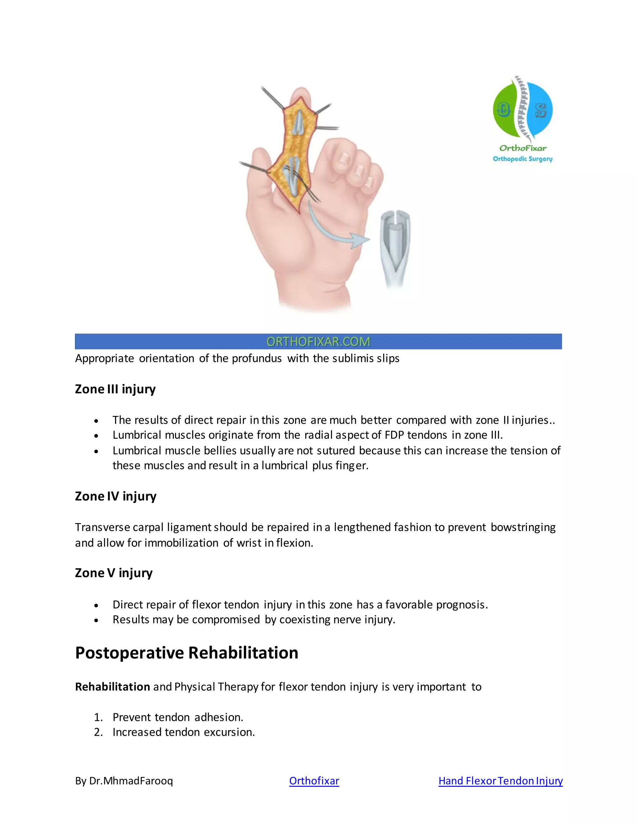 Flexor tendon injuries: Repair & Rehabilitation - Injury