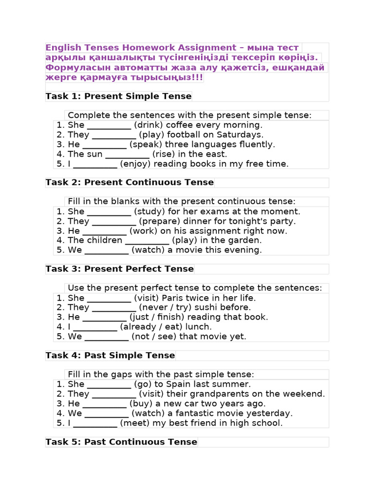 English Tenses Homework Assignment | PDF | Perfect (Grammar ...