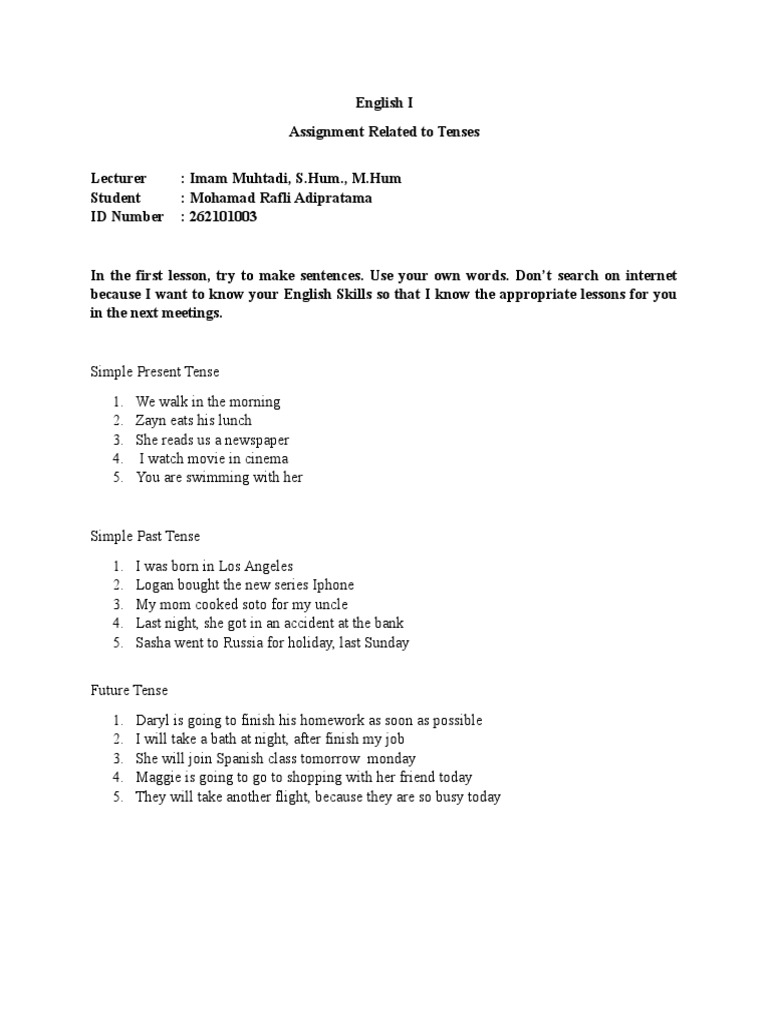 Assignment of Tenses 1.docx - Assignment of Tenses NAME : NIM : CLASS ...