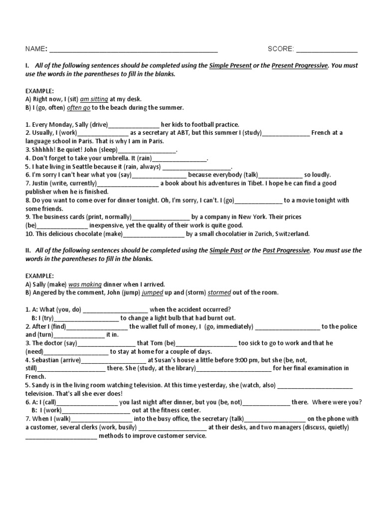 Verb tenses - grade 7,8 worksheet | Present continuous tense, Simple ...