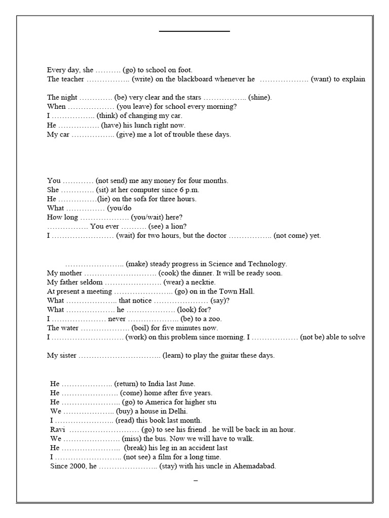 Tenses Exercises Class 6 English Grammar Chapter 14 Simple Tenses
