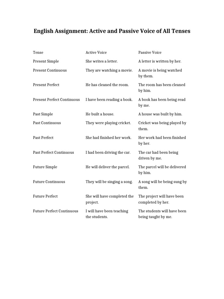 Assignment 1: Prepare a Tense-chart with all twelve tense structures and