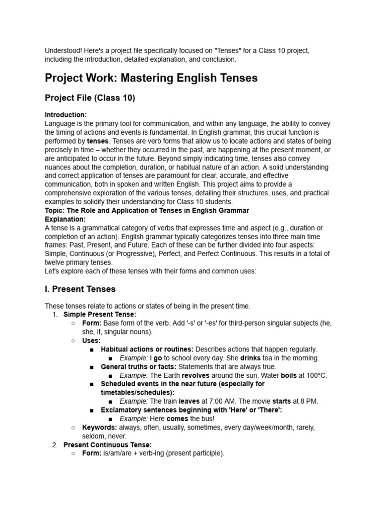 Class 10 Tenses Project Overview | PDF | Grammatical Tense | Syntax