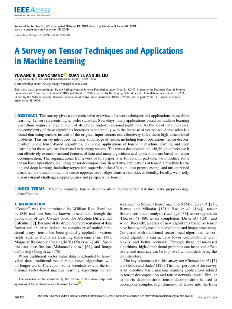 A Survey On Tensor Techniques and Applications in Machine Learning ...