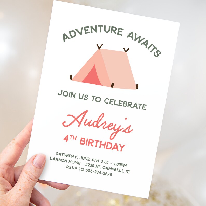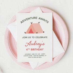 Camping Birthday Party Invitation, Tent Invitation Pink, Girl Birthday ...