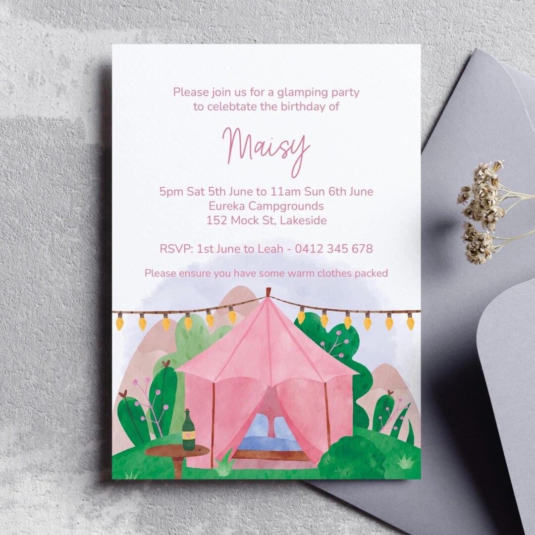 Glamping Birthday Invite Canva Template, Camping Party Invitation ...