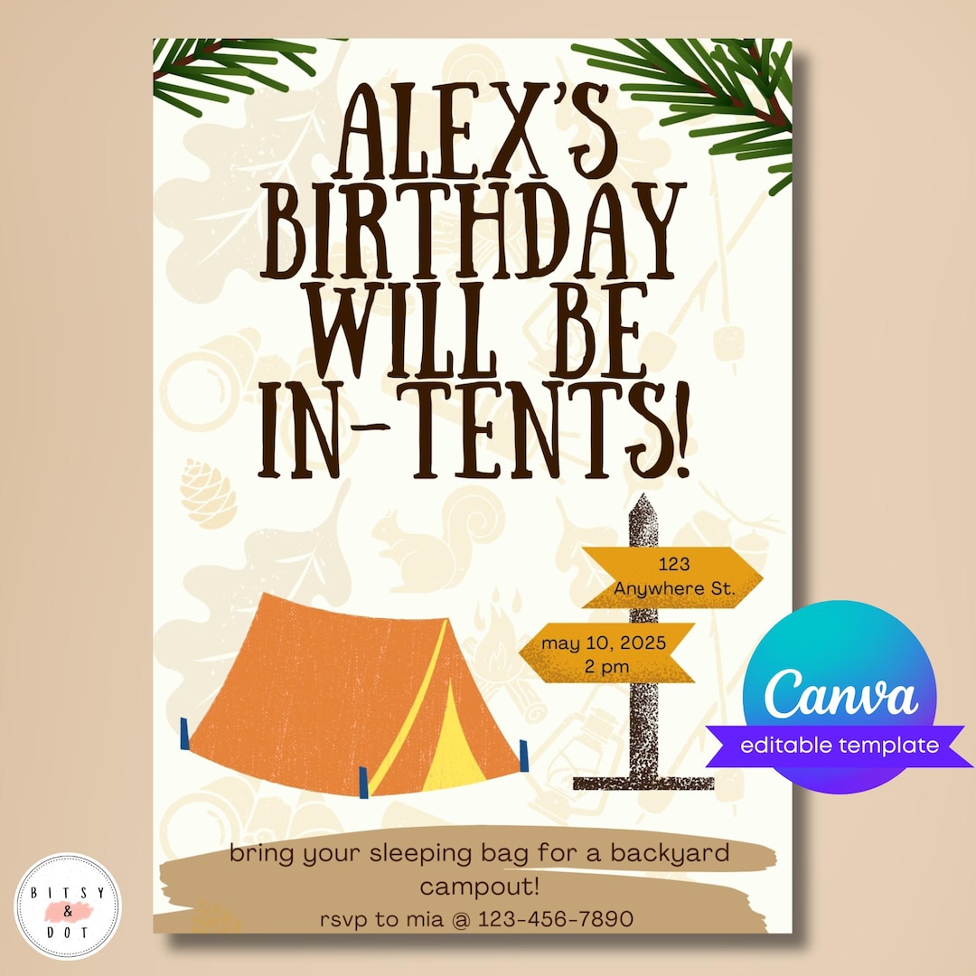 Camping Tent Invitation Template Printable Birthday Party - Etsy UK