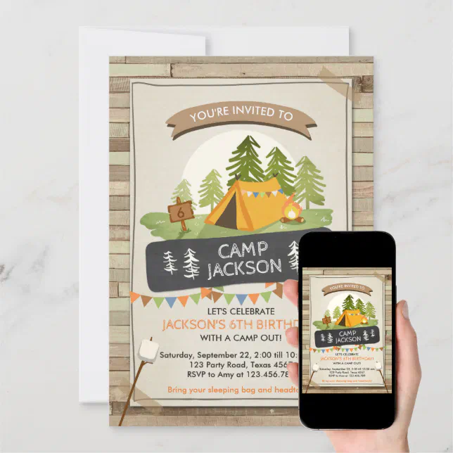 Camping Tent Invitation Birthday Camp out Glamping | Zazzle