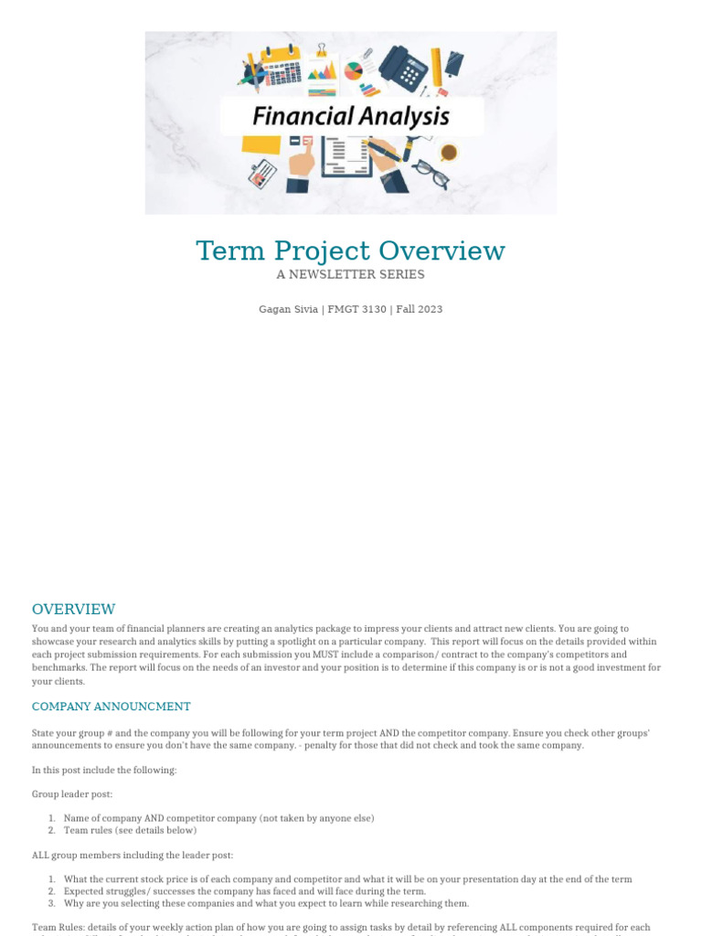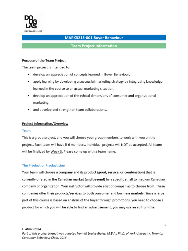 MKT 305 TERM Project - TERM PROJECT Overview In teams of approximately ...