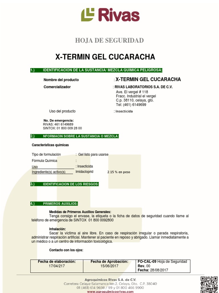 Msds X Termin Gel Cucaracha PDF | PDF | Toxicidad | Agua