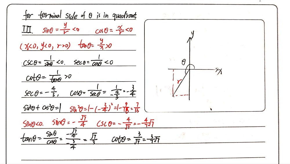 Solved The Terminal side of on angle θ, in standert positin | Chegg.com