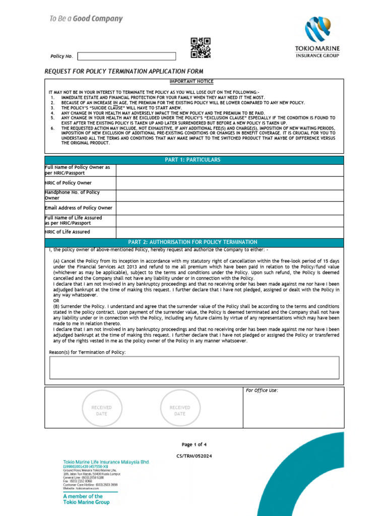 Request For Policy Termination Application Form-Sign | PDF | Taxes ...
