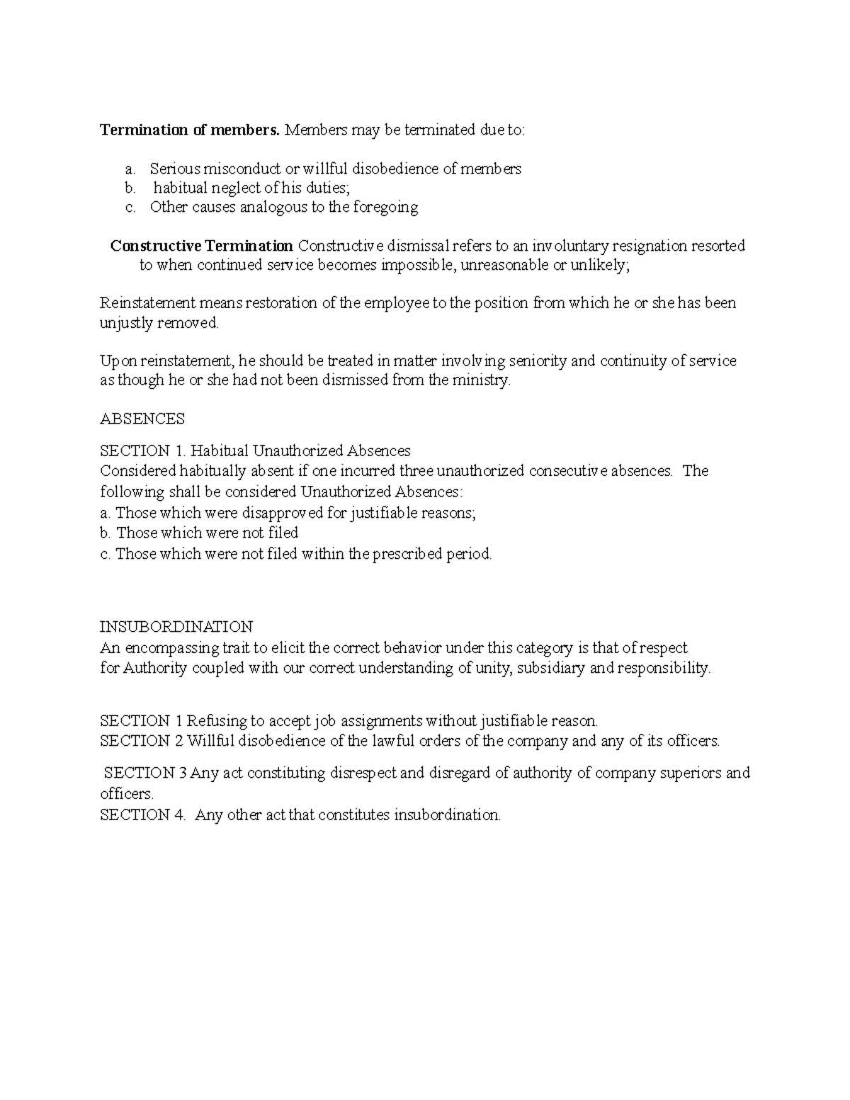 Conduct - behaviour - Termination of members. Members may be terminated ...