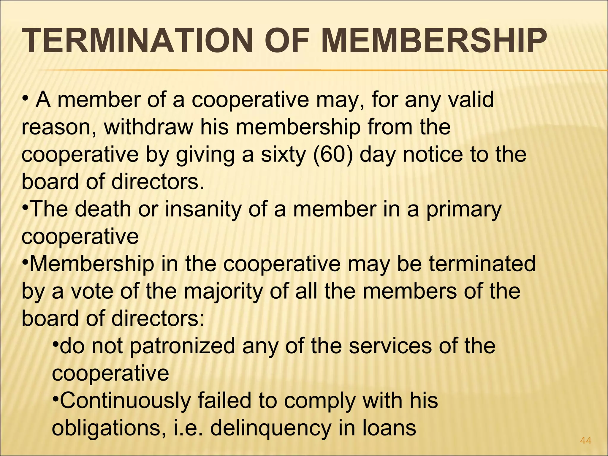 Cooperative Management - ART. 30. Termination of Membership (1) A ...