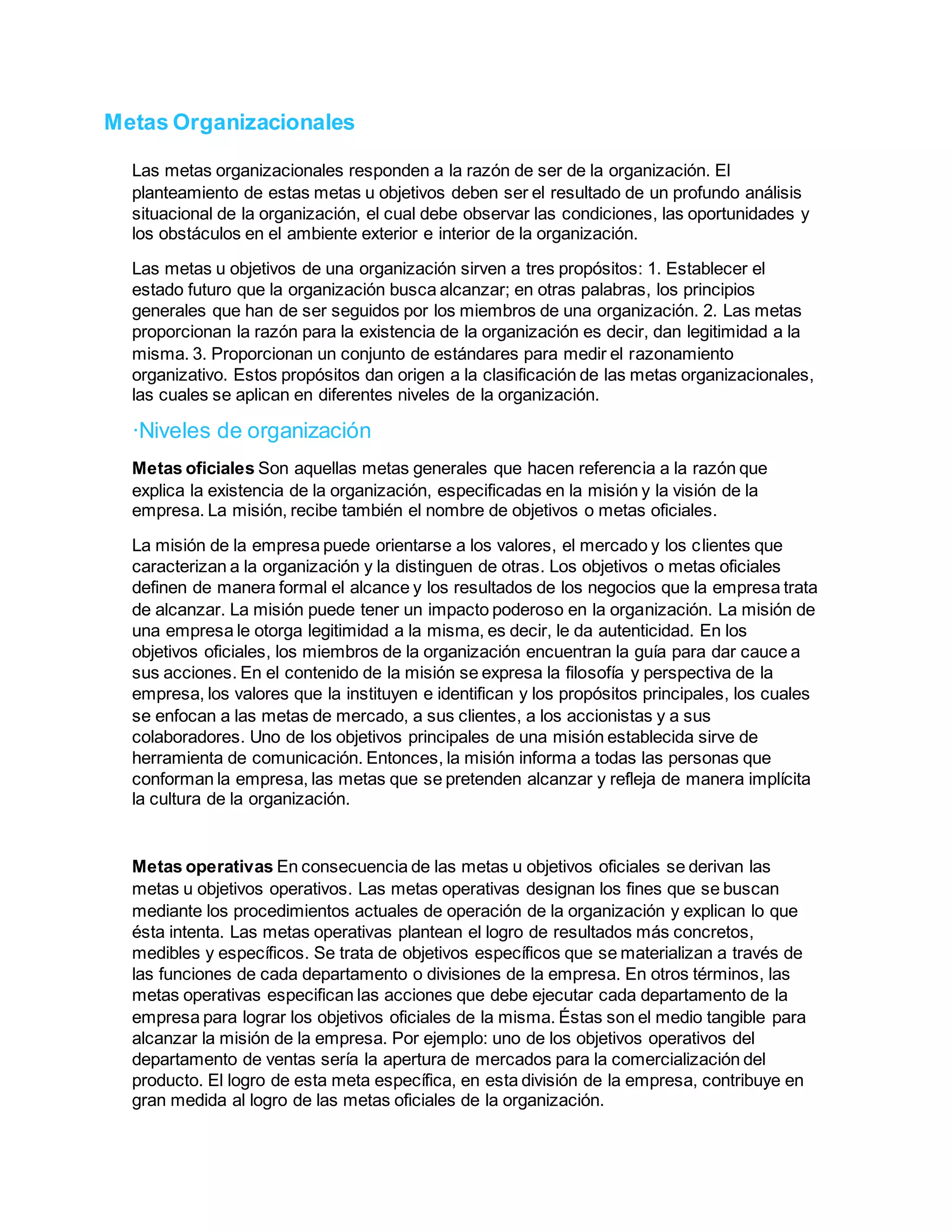Metas organizacionales | DOCX