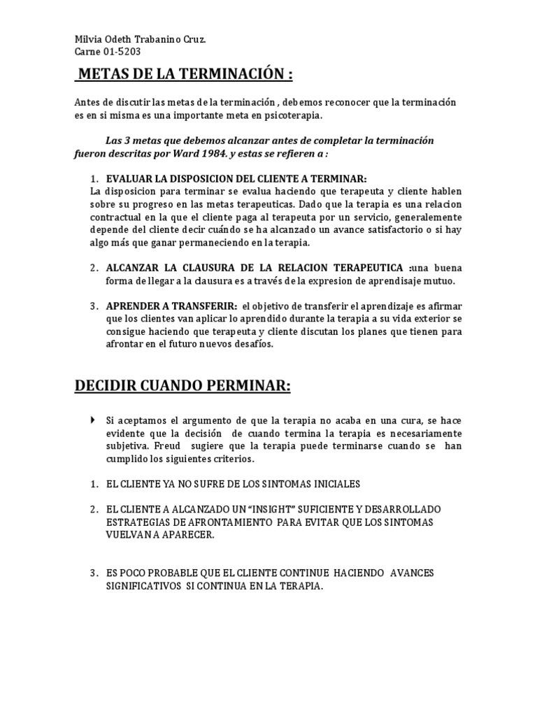 Metas de La Terminación | PDF | Cliente | Psicoterapia