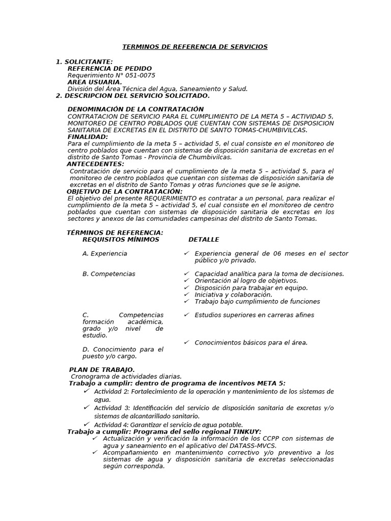 Terminos de Referencia Meta 5 | PDF | Saneamiento | Agua