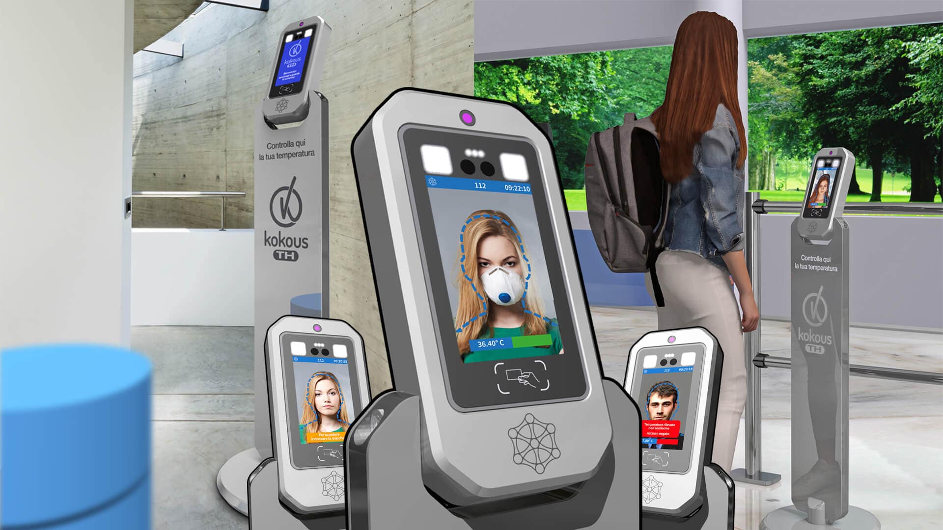Termoscanner con riconoscimento facciale, temperatura e mascherina